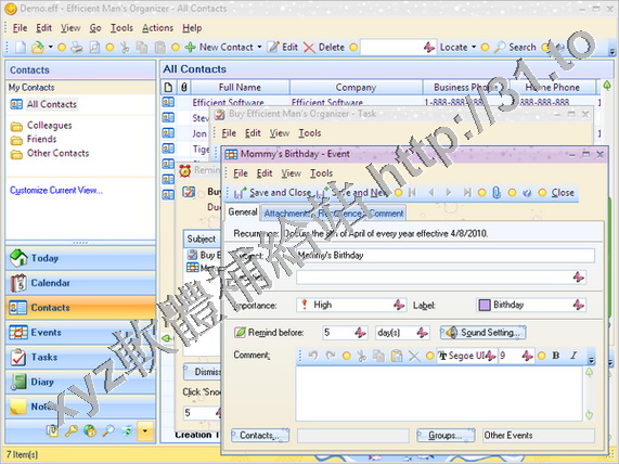 Efficient Software Efficient Mans Organizer v3.50.335 英文正式版(個人資訊管理系統軟體)