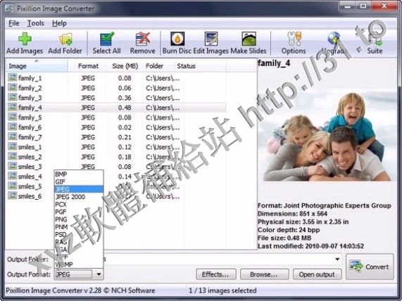 件的參數。通過NCH Pixillion Image Converter您可以快速,方便地轉換圖像文件為你想要的格