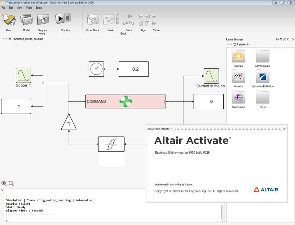Altair Activate提供簡單的模擬功能,在軟體主介面提供對應功能的圖示,你可以在功能表介面建立新的工程,可以在軟體載入需要建模的材料,隨後可以在軟體上對你產品開發的過程進行模擬類比,類比模型的過程分三個階段進行,包括評估,編譯和模擬,評估階段是模擬過程的第一階段,並產生編譯階段所需的分層資料結構,在評估期間,軟體基於.scm檔中定義的模型結構建立新的資料結構,在評估期間,軟體還計算塊參數的所有數值,並將它們存儲在資料結構中,以便以後在模擬階段使用!