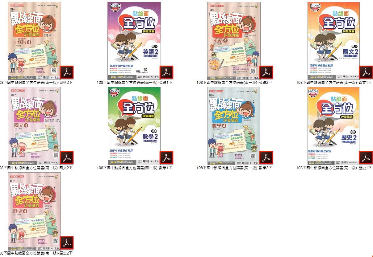 108學年下學期 國中點線面全方位評量講義 南一版 1-3年級 全科目 講義光碟DVD版