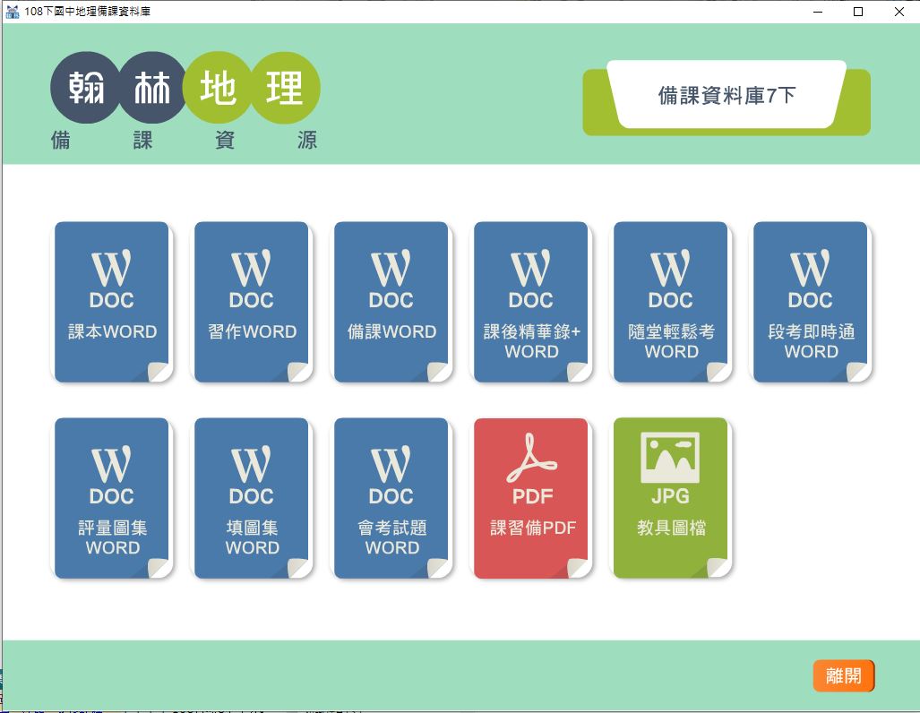 • 108學年下學期 國中 翰林版 地理備課資料庫 2-3年級(含課本、卷類資源、備課用書、習作含解答、教學輔助資源)教學光碟DVD版
