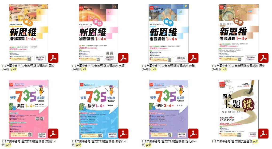 113年國中會考[金安]735總複習(英語、數學、理化) + 新思維複習講義 + 雙向溝通複習講義 + 國文主題讚 講義光碟