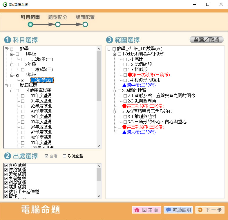 112學年上學期 國中命題光碟 南一版 1-3年級 數學(108課綱) 題庫光碟