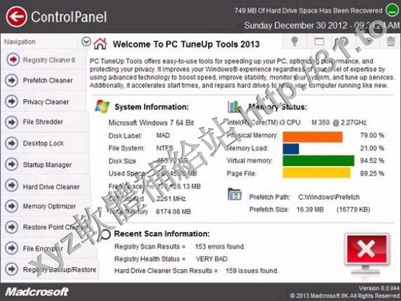 • Madcrosoft PC TuneUp Tools 2013 v8.0.044.b.28.12.2012 英文正式版(Windows的Tune-Up的軟體)