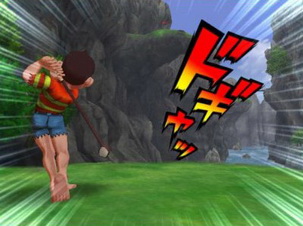 合畫面上的狀聲字與速度線出現時機以 Wii 遙控器模擬揮桿,就能擊出長遠的好球。當